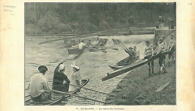Dès 1895, dans le tableau « Le saut du barrage » du peintre Ferdinand Gueldry, on remarque la présence d’une embarcation en bois – appelée à l’époque « baladeuse » – occupée à l’arrière par un homme et à l’avant par… une femme !