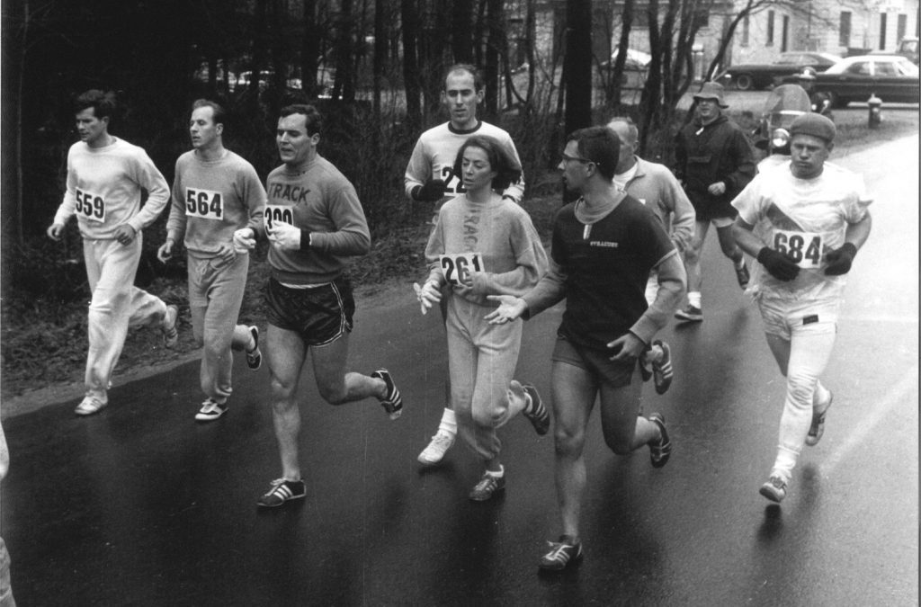 Elle s’inscrit donc sous le nom « K. V. Switzer » et, le 19 avril 1967, prend le départ du marathon avec le dossard n° 261 accroché au maillot.
