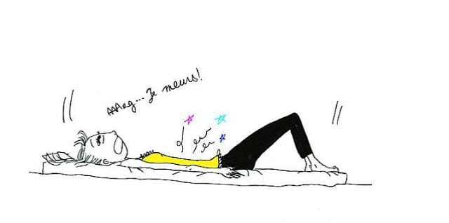 Reprise du sport la veille : Aïe, les courbatures ! Je vois bien que dans sa tête, elle est en mode : « Mais pourquoi, pourquoi, je fais du sport ?! »
