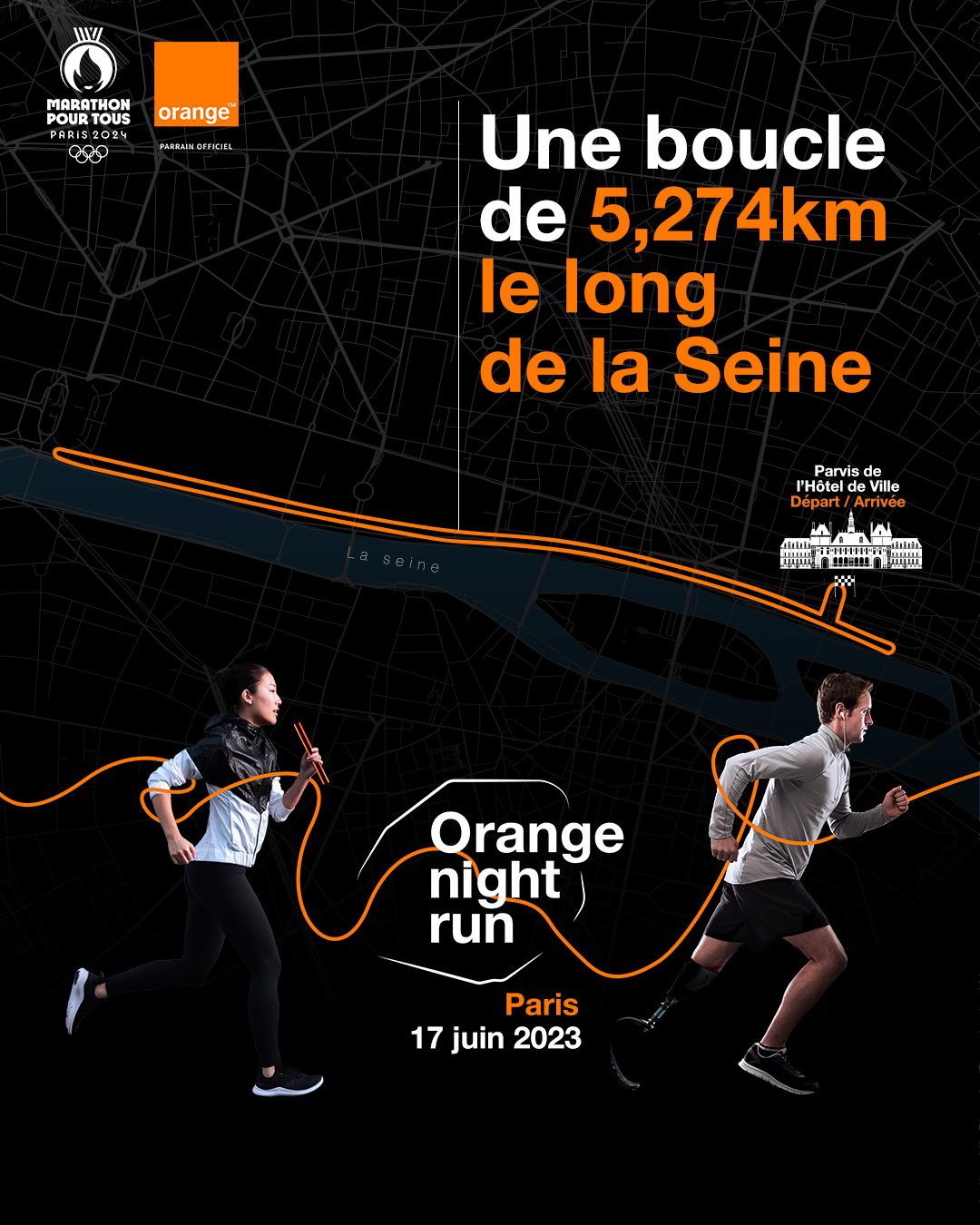 Le samedi 17 juin 2023, l’Orange Night Run lance sa première édition, un marathon à s’offrir en relais de cinq. L’inscription est gratuite. Petite particularité, la course aura lieu de nuit ! Et oui, départ prévu à 19h45 pour les runneurs et runneuses volontaires.
